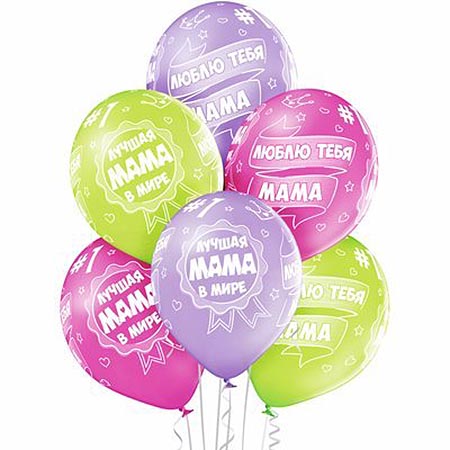 Шар латексный шелкография 14"/35см Лучшая мама, ассорти