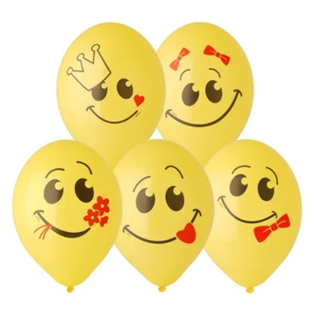 Шар латексный с рисунком 14"/36см Улыбка, желтый, 5 дизайнов