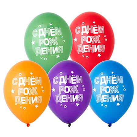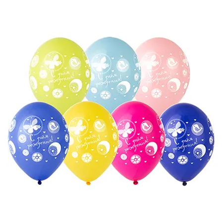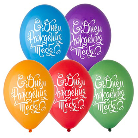 Шар латексный с рисунком 12"/30см С Днем рождения! Тебя, ассорти из 5 цветов