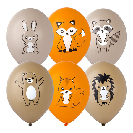 Шар латексный с рисунком 14"/36см Лесные зверюшки ассорти из 2 цветов, 6 дизайнов