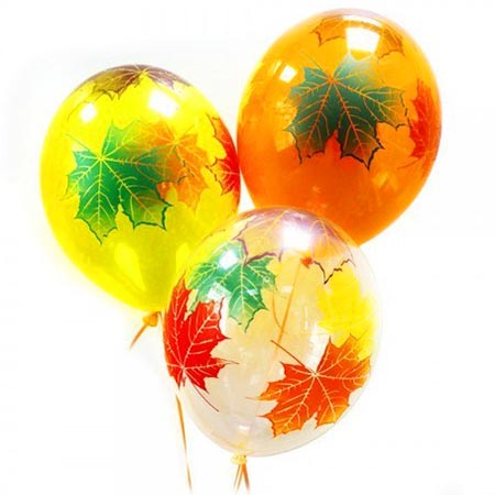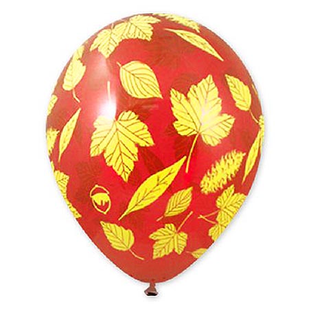 Шар латексный с рисунком 14"/36см Осенние листья, ассорти из 10-12 цветов