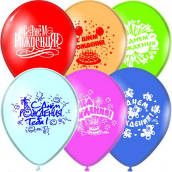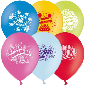 Шар латексный с рисунком 14"/36см С Днем рождения! ассорти из 10-12 цветов, 6 дизайнов