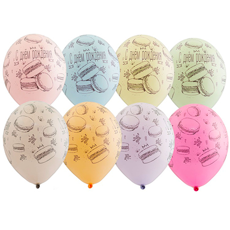 Шар латексный шелкография 14"/35см С Днем рождения! Macaron, ассорти из 8 цветов, 1 дизайна