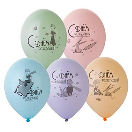 Шар латексный пастель 12"/30см С Днем рождения! Маленький Принц, ассорти из 5 цветов