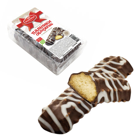 Печенье БЕЛОГОРЬЕ "Пальчики оближешь", сдобное в темной глазури с декором, 265 г, 30-61