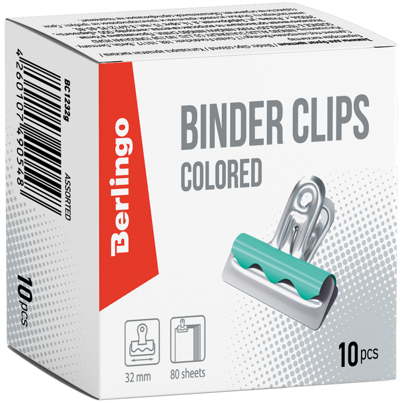 Зажимы-бульдоги для бумаг 32мм, Berlingo, 10шт., цветные, картонная коробка
