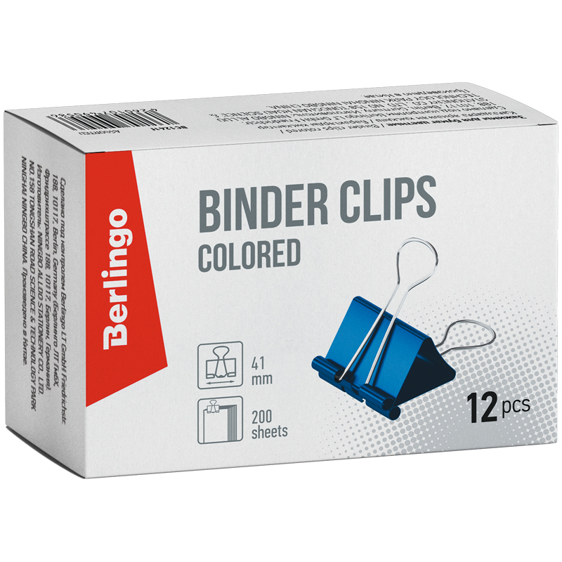 Зажимы для бумаг 41мм, Berlingo, 12шт., цветные, картонная коробка