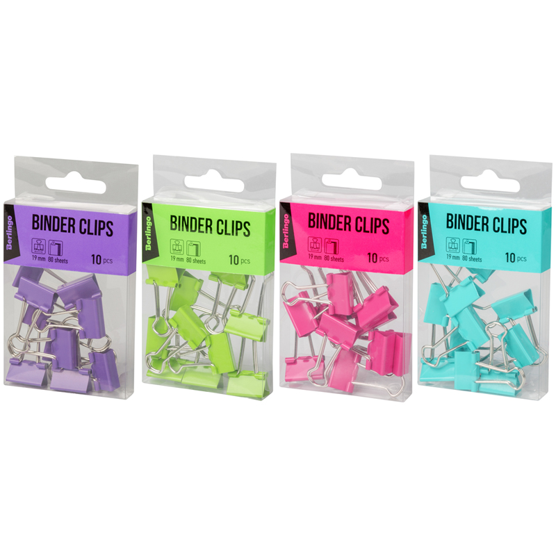 Зажимы для бумаг 19мм, Berlingo 10шт, цветные, ПВХ упак., европодвес