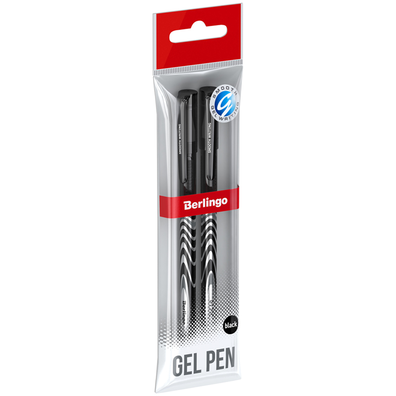 Ручка гелевая Berlingo "G-Line" черная, 0,5мм, игольчатый стержень, 2шт., пакет с европодвесом