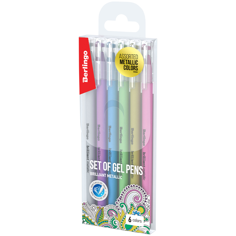 Набор гелевых ручек Berlingo "Brilliant Metallic" 6шт., 06цв., 0,8мм, корпус ассорти