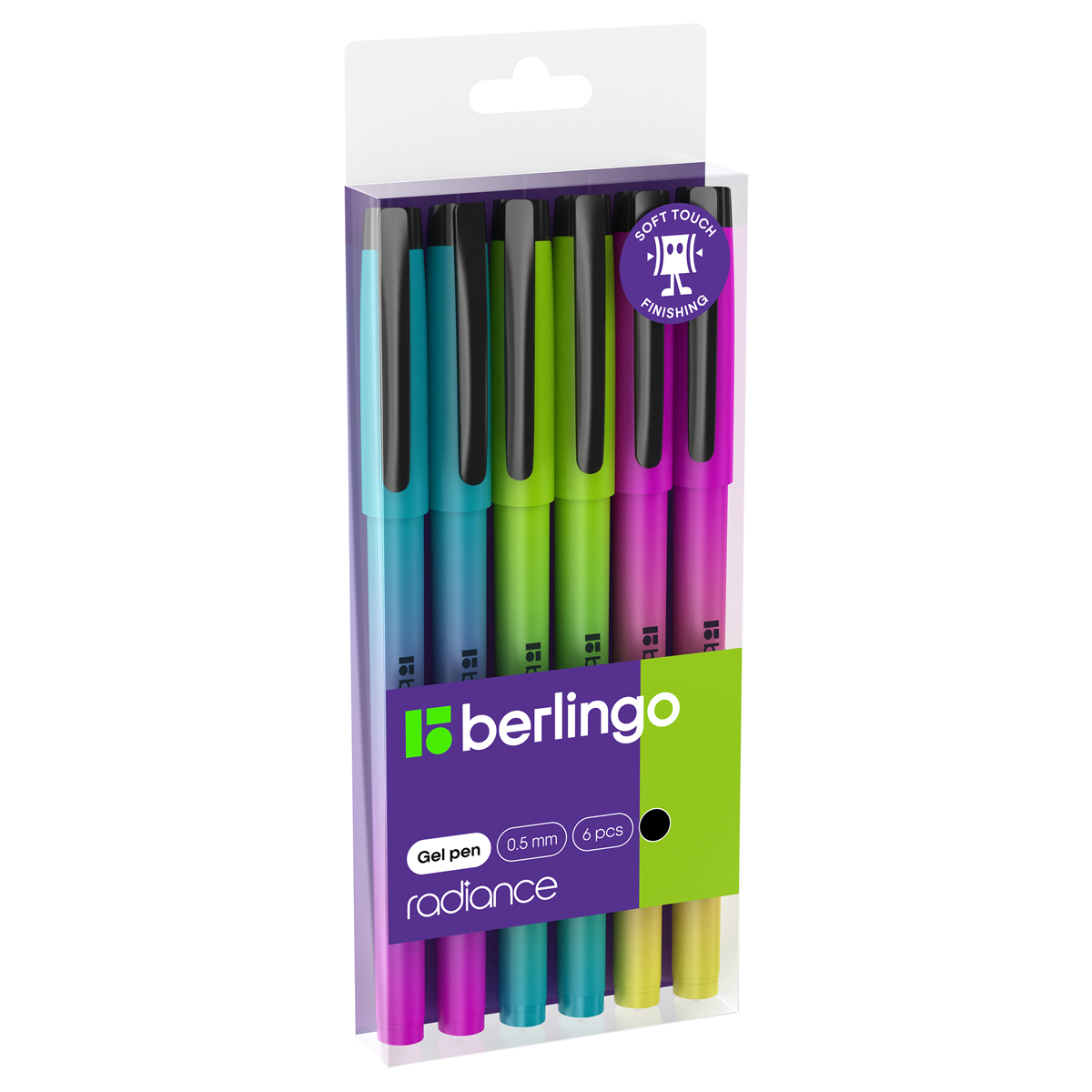 Ручка гелевая Berlingo "Radiance" черная, 0,5мм, корпус ассорти, 6шт., PET бокс