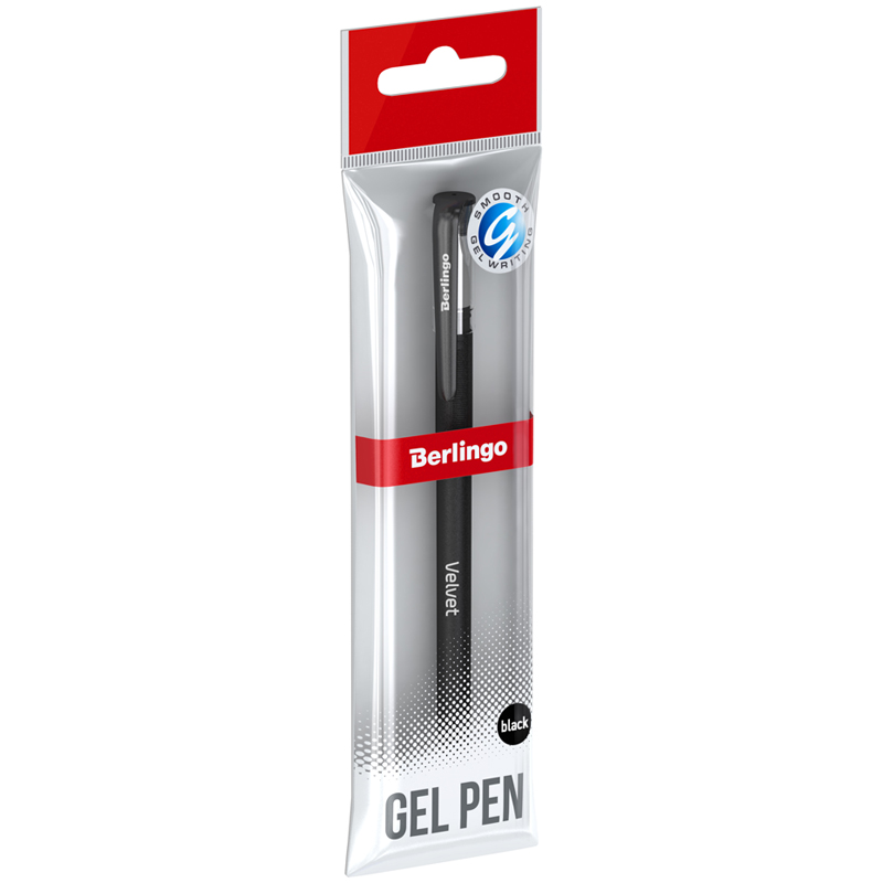 Ручка гелевая Berlingo "Velvet" черная, 0,5мм, прорезиненный корпус, пакет с европодвесом