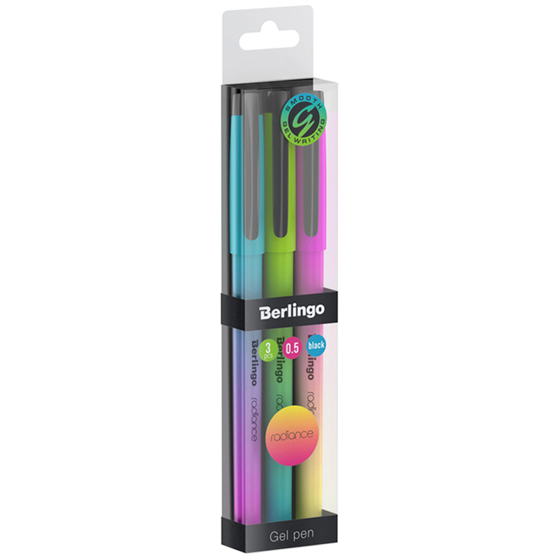 Ручка гелевая Berlingo "Radiance" черная, 0,5мм, корпус ассорти, 3шт., PET бокс