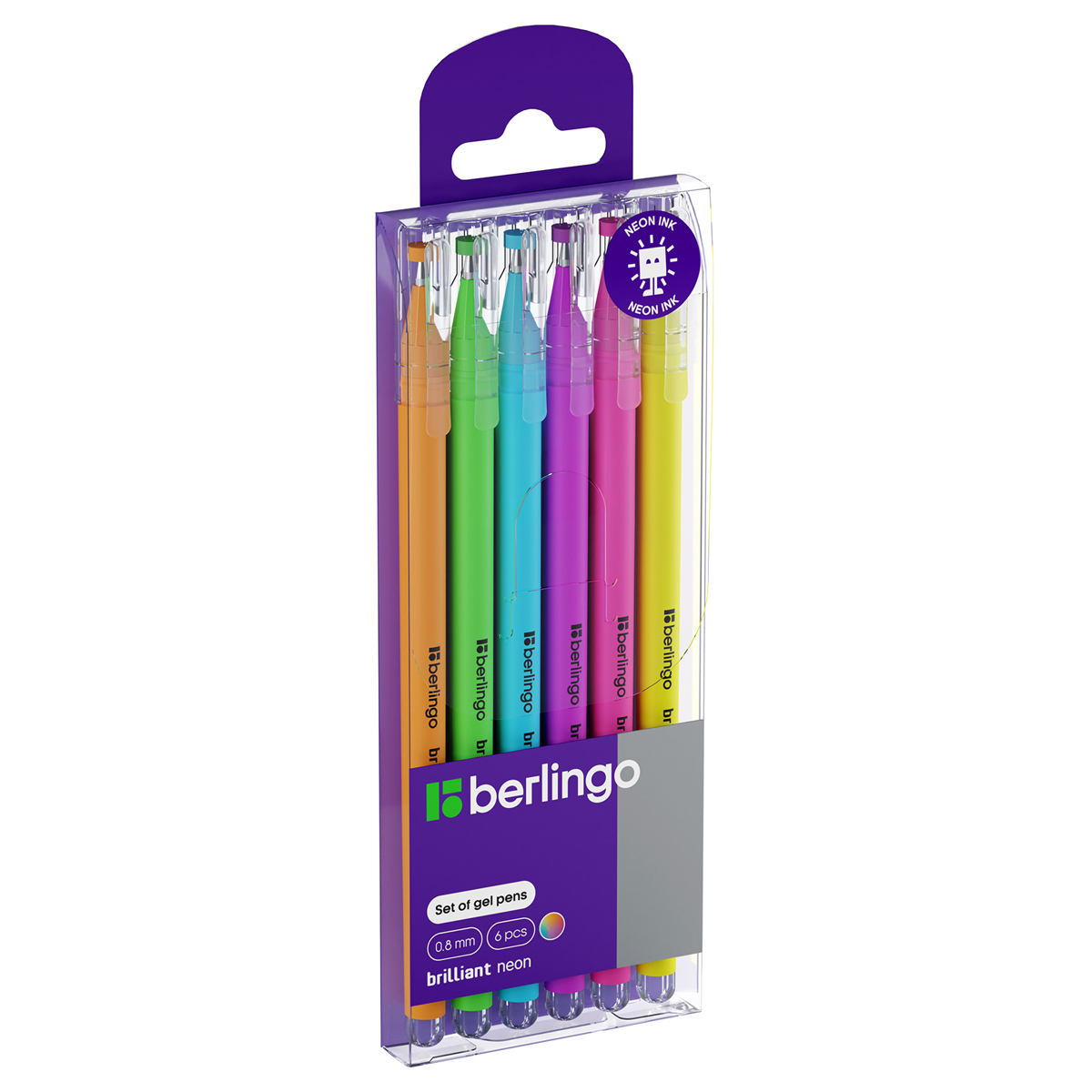 Набор гелевых ручек Berlingo "Brilliant Neon" 6шт., 06цв., 0,8мм, корпус ассорти