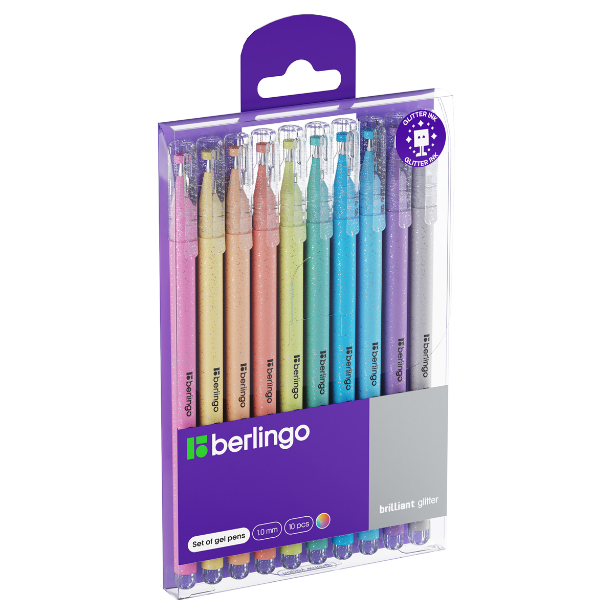 Набор гелевых ручек Berlingo "Brilliant Glitter" 10шт., 10цв., 1,0мм, корпус ассорти