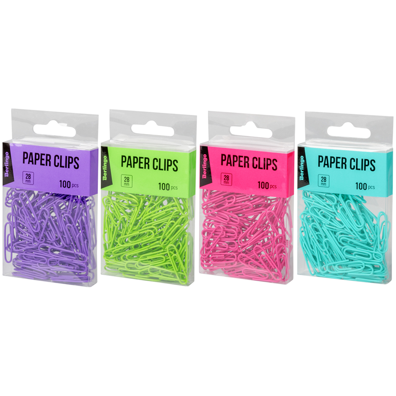 Скрепки 28мм, Berlingo, 100 шт, цветные, ПВХ упак., европодвес