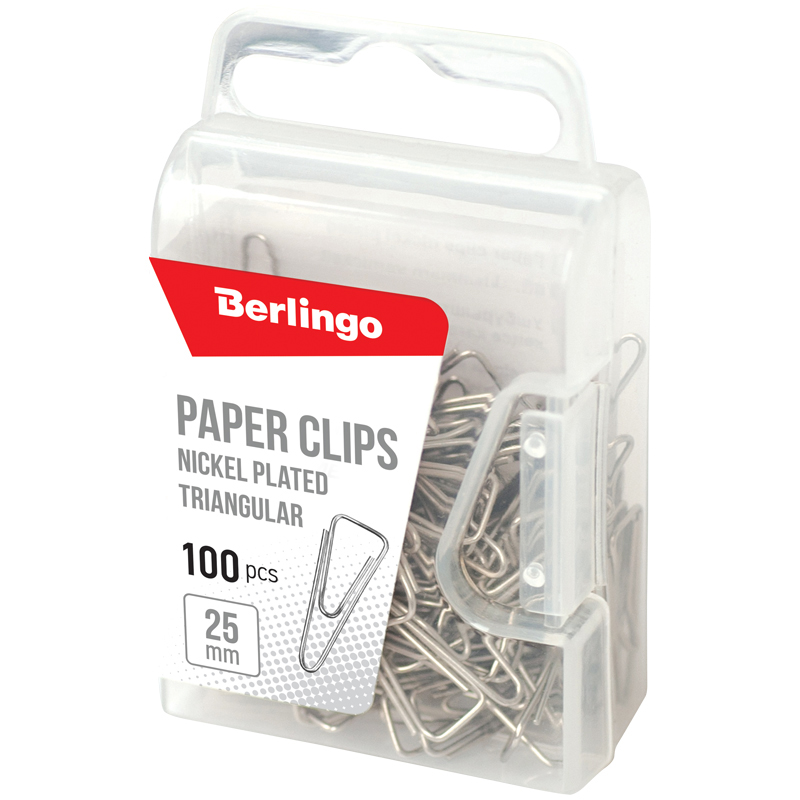 Скрепки 25мм, Berlingo, 100шт., никелированные треугольные, пласт. упак., европодвес