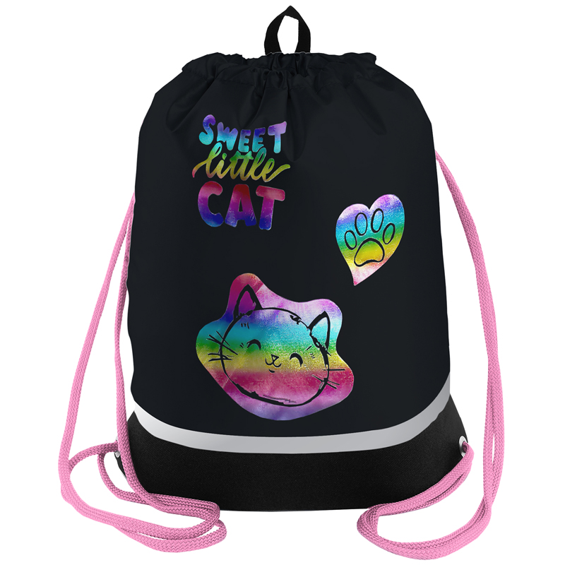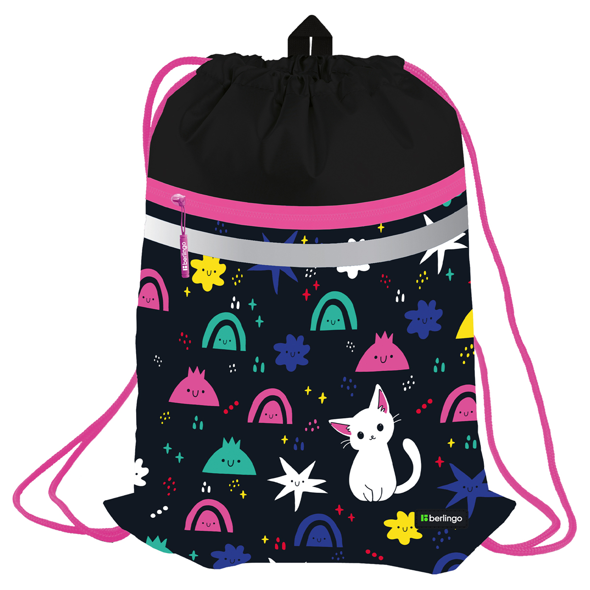 Мешок для обуви 1 отделение Berlingo "Meow love", 510*400мм, расшир. дно, светоотражающая лента, карман на молнии