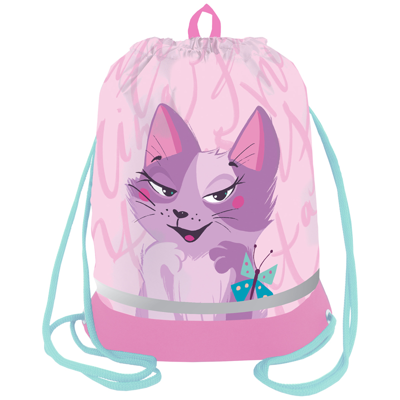 УЦЕНКА - Мешок для обуви 1 отделение Berlingo "Princess cat", 510*400мм, расшир. дно, светоотражающая лента, карман на молнии