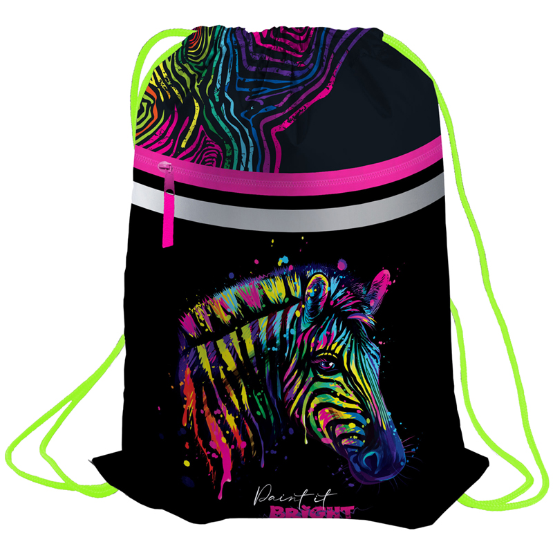 Мешок для обуви 1 отделение Berlingo "Neon Zebra", 460*360мм, светоотражающая лента, карман на молнии