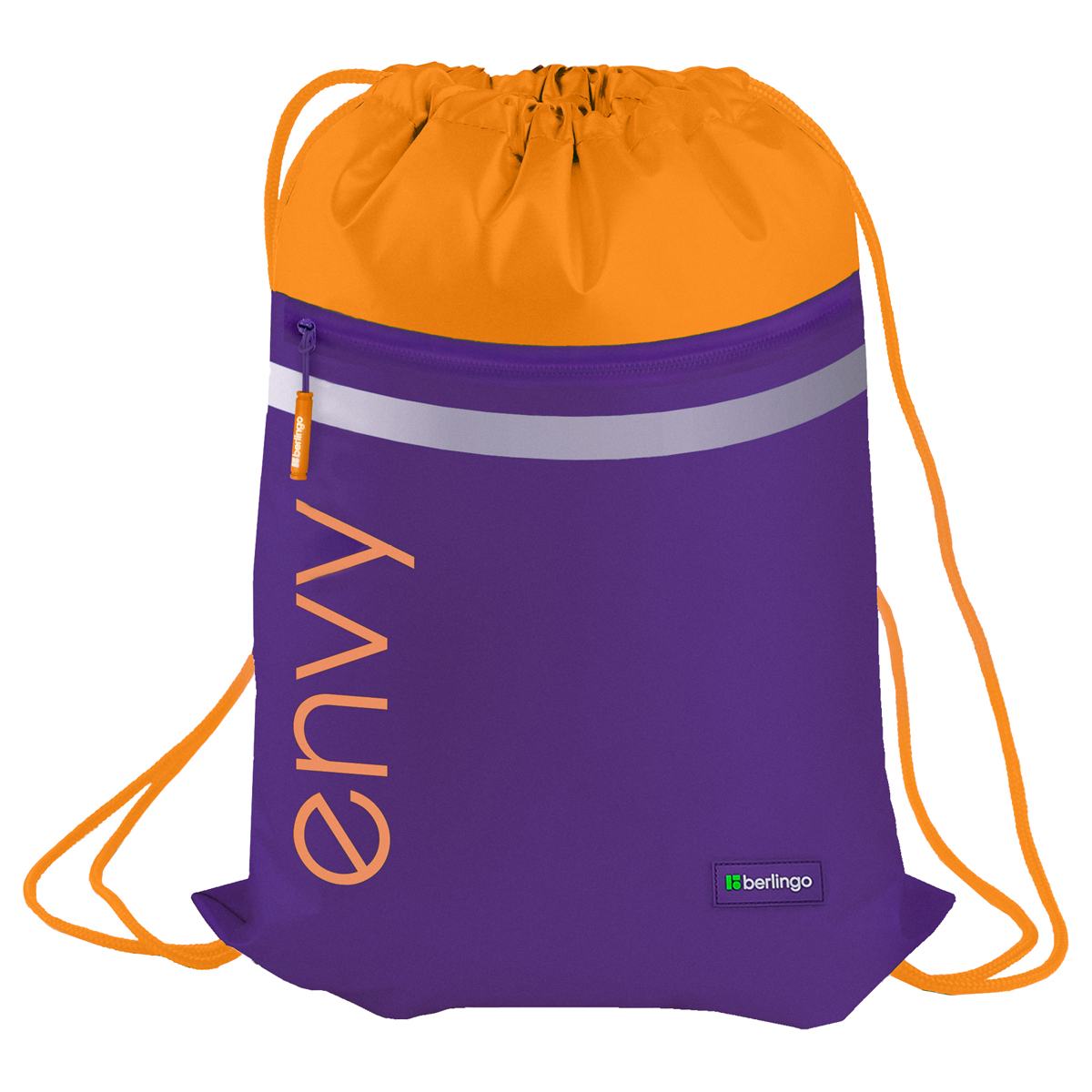 Мешок для обуви 1 отделение Berlingo "Envy", 360*470мм, светоотражающая лента, карман на молнии, оранжевый