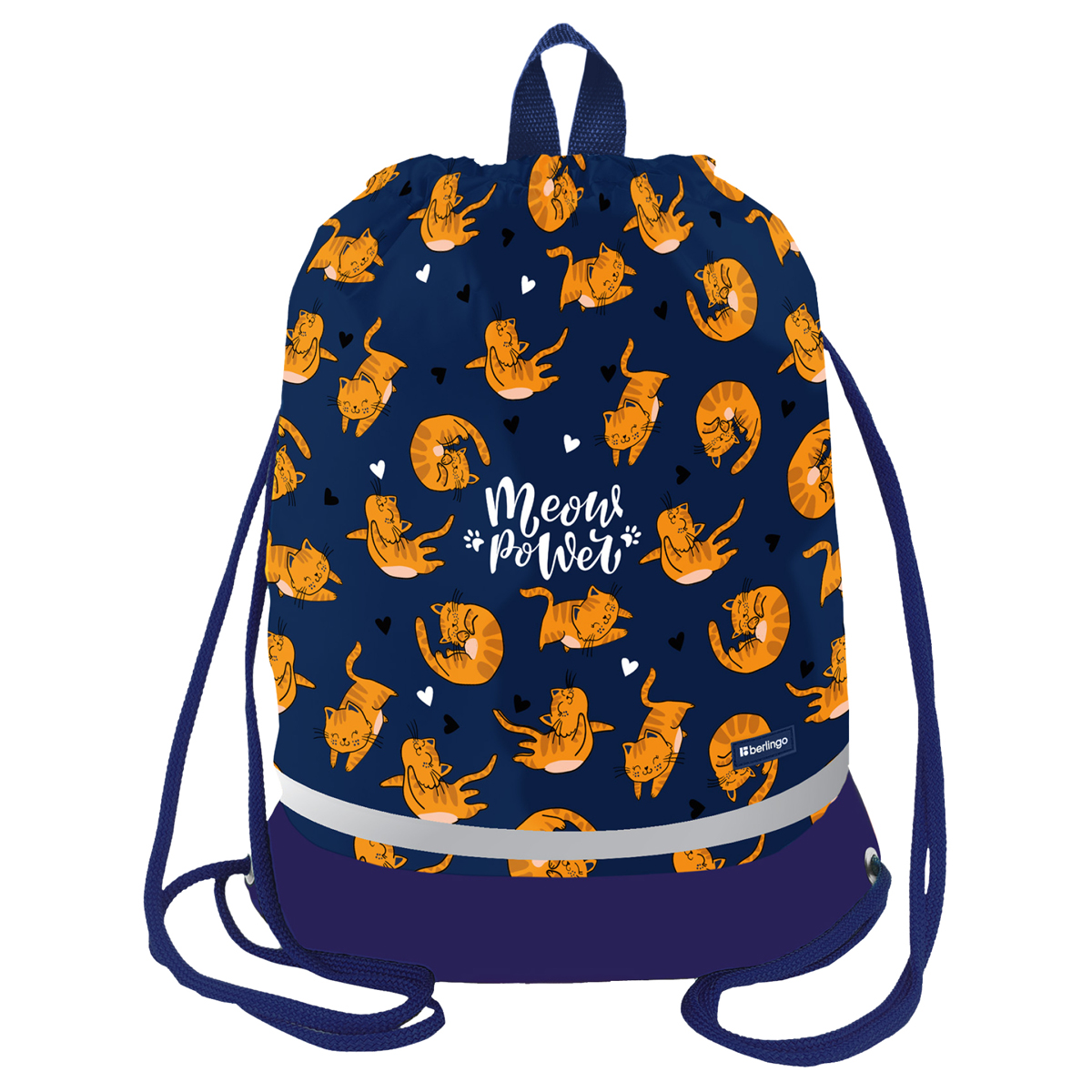 Мешок для обуви 1 отделение Berlingo "Meow power", 400*480мм, расширяющееся дно, светоотражающая лента, карман на молнии