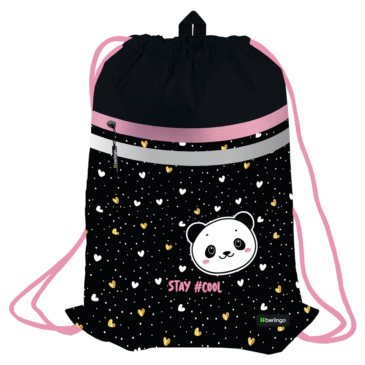 Мешок для обуви 1 отделение Berlingo "Cool panda", 340*460мм, вентиляционная сеточка, светоотражающая лента, карман на молнии