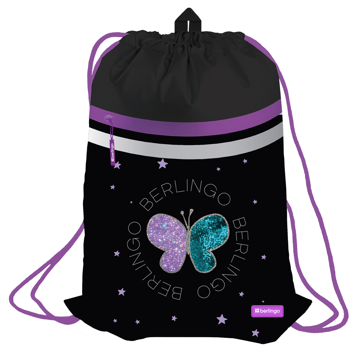 Мешок для обуви 1 отделение Berlingo "Shining butterfly", 340*460мм, вентиляционная сеточка, светоотражающая лента, карман на молнии