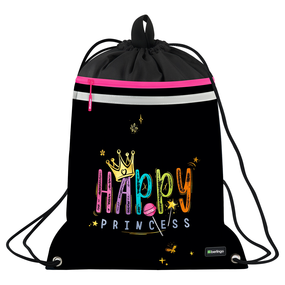 Мешок для обуви 1 отделение Berlingo "Candy Princess", 400*480мм, вентиляционная сеточка , светоотражающая лента, карман на молнии
