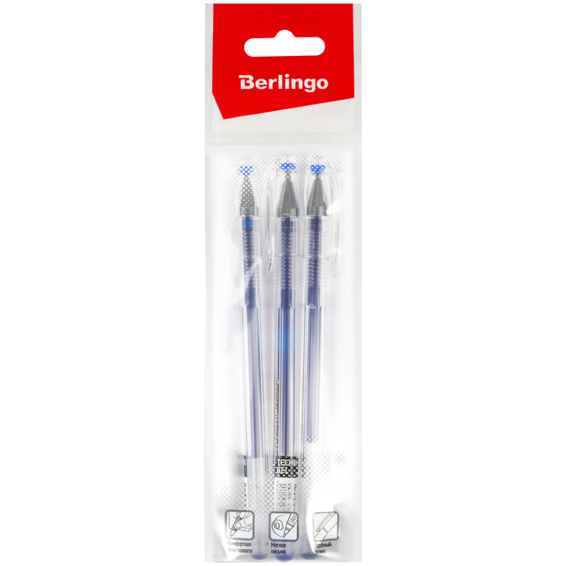 Набор ручек гелевых Berlingo "Techno-Gel" синие 0,5мм 3шт (фасовка)
