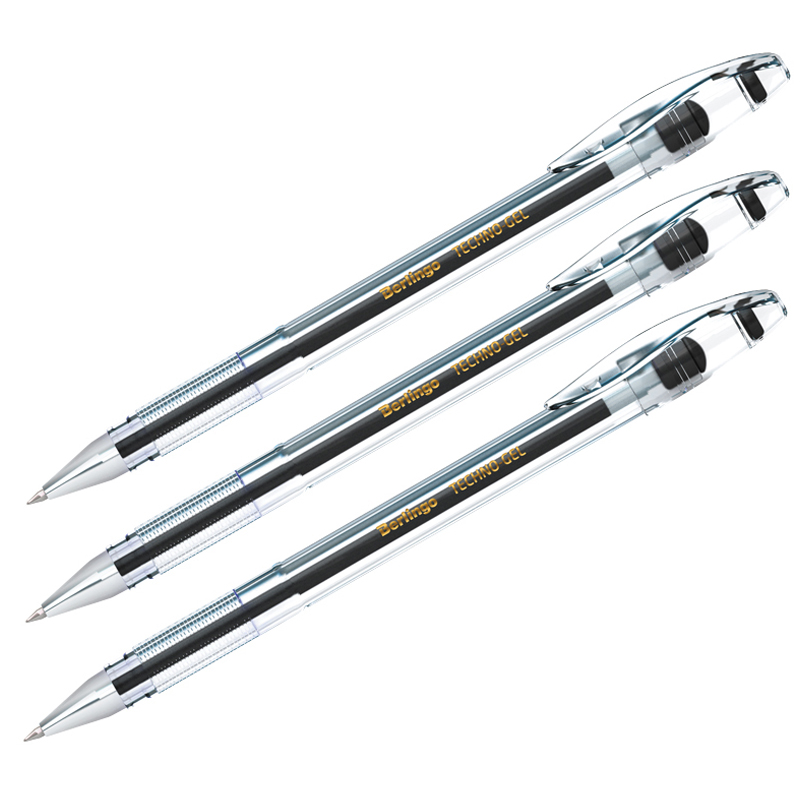 Набор гелевых ручек "Techno-Gel" 3шт, черные, 0,5мм, пакет, европодвес
