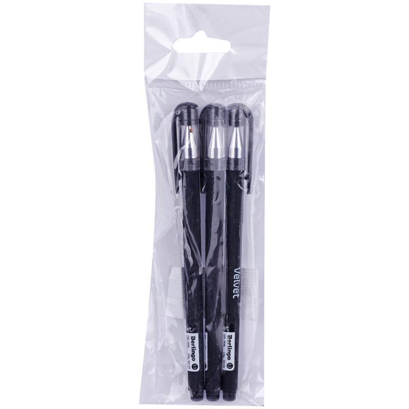 Набор гелевых ручек "Velvet" 3шт., черные, 0,5мм, прорезиненый корпус, пакет, европодвес