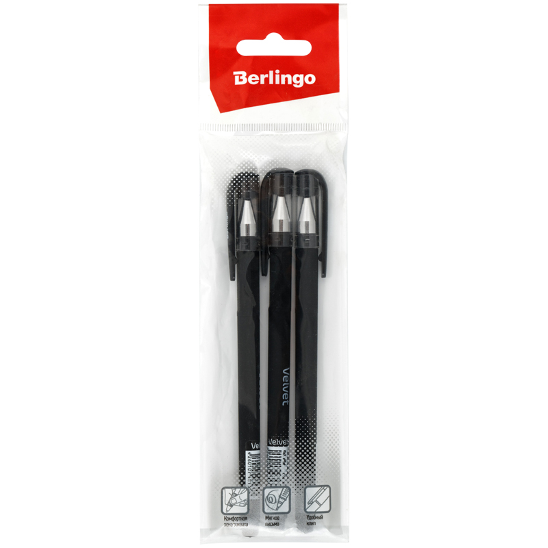 Набор гелевых ручек Berlingo "Velvet" 3шт., черная, 0,5мм, прорезиненный корпус