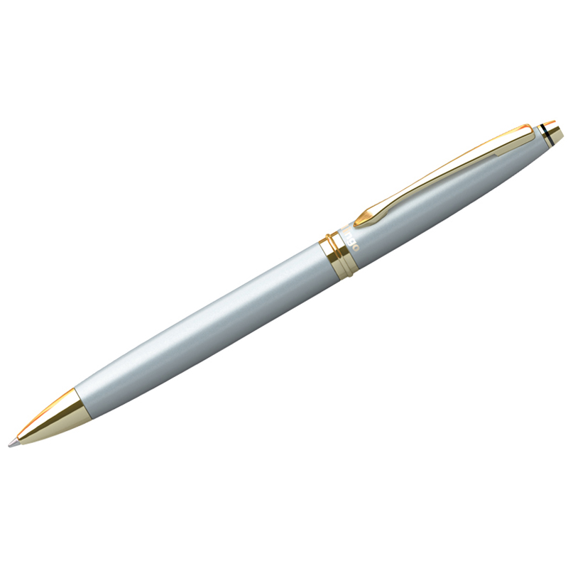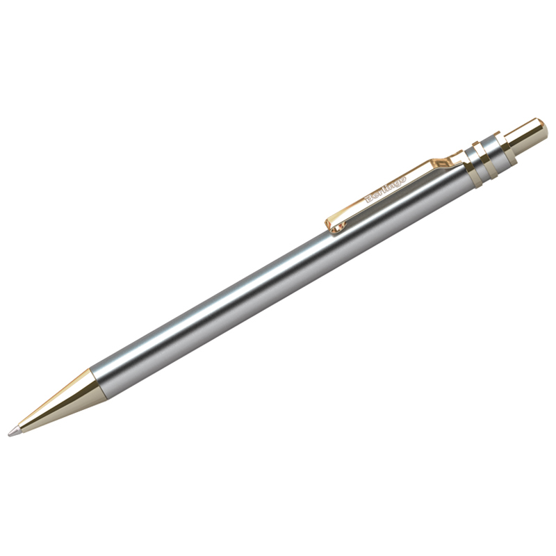 Ручка шариковая Berlingo "Silver Premium" синяя, 0,7мм, корпус хром/золото, кнопочн., пласт. футляр