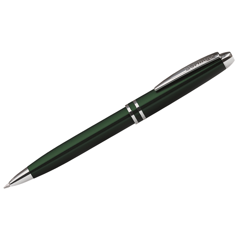 Ручка шариковая Berlingo "Silk Classic" синяя, 0,7мм, корпус зеленый/хром, поворот., пласт. футляр