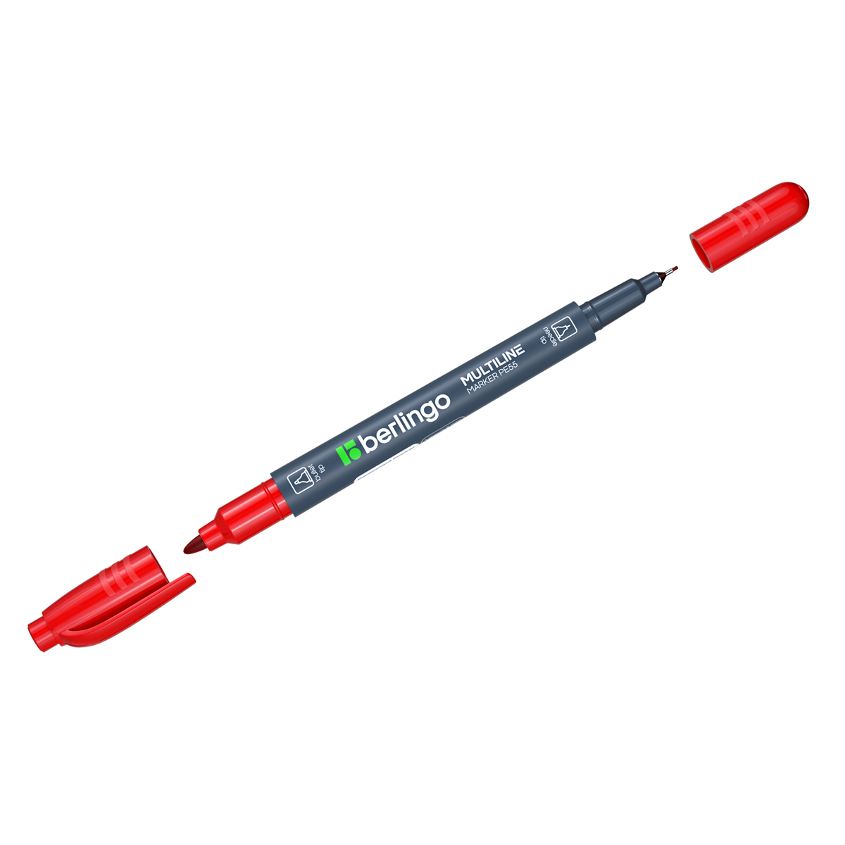 Маркер перманентный двухсторонний Berlingo "Multiline PE55" красный, пулевидный, 0,5/1мм