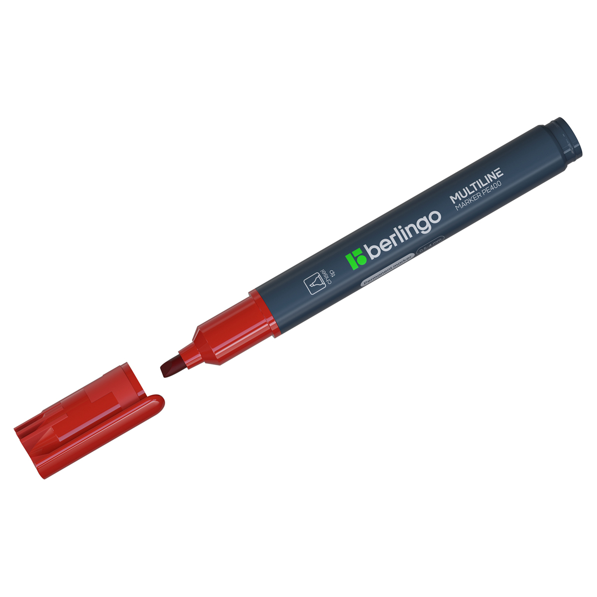 Маркер перманентный Berlingo "Multiline PE400" красный, скошенный, 0,5-4мм