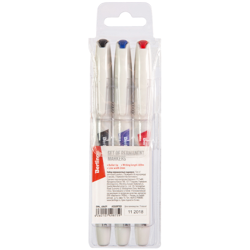 Набор перманентных маркеров Berlingo "Multiline PE210", 3цв., пулевидный, 2мм, блистер