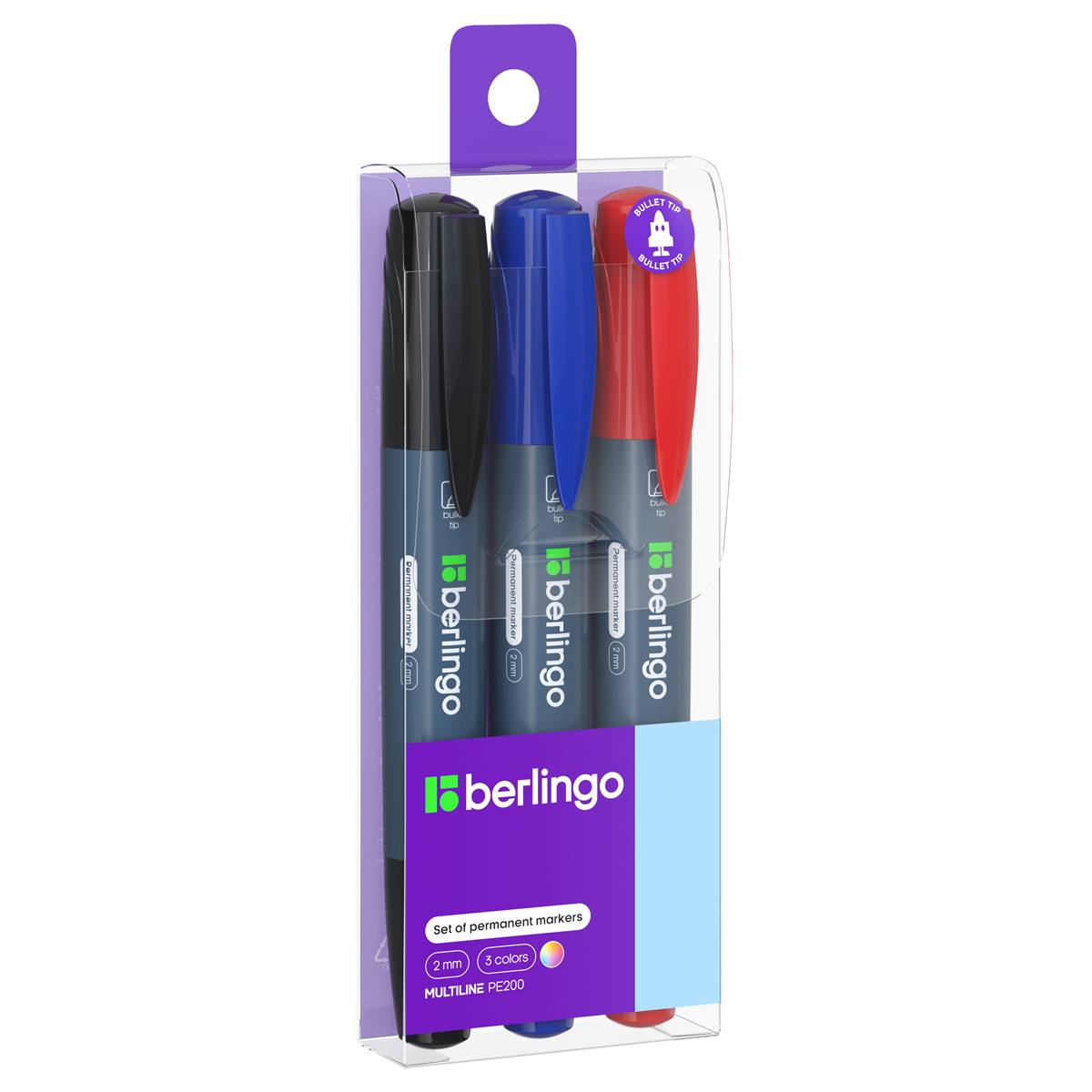 Набор перманентных маркеров Berlingo "Multiline PE200" 03цв., пулевидный, 2,0мм, европодвес