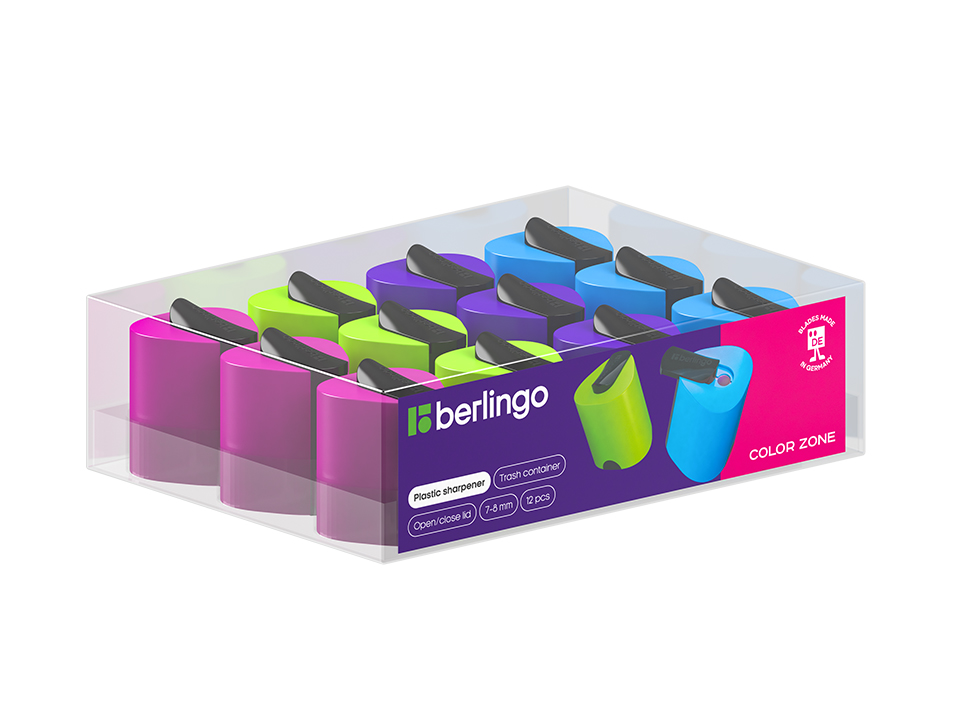 Точилка пластиковая Berlingo "Color Zone" 1 отверстие, контейнер, ассорти
