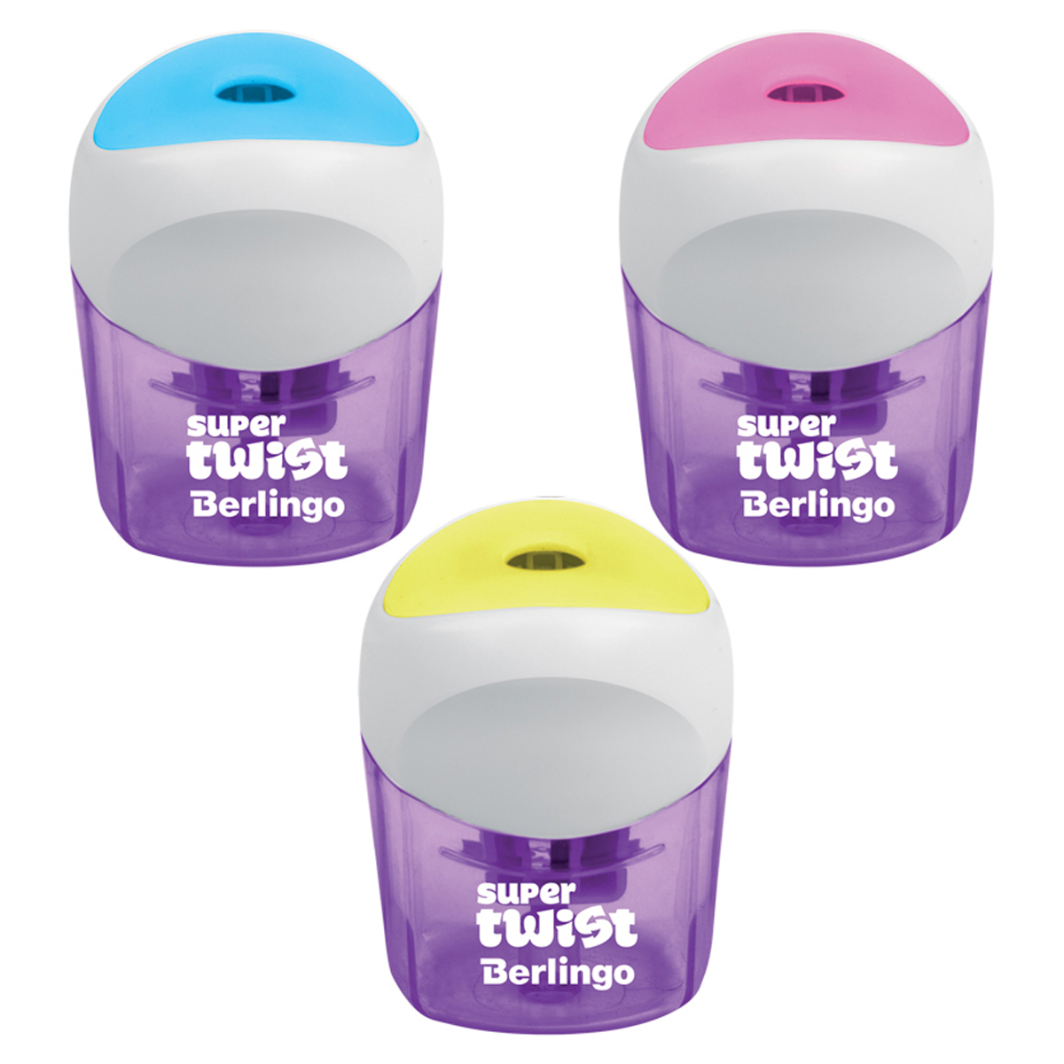 Точилка пластиковая Berlingo "SuperTwist" 1 отверстие, контейнер, ассорти, блистер
