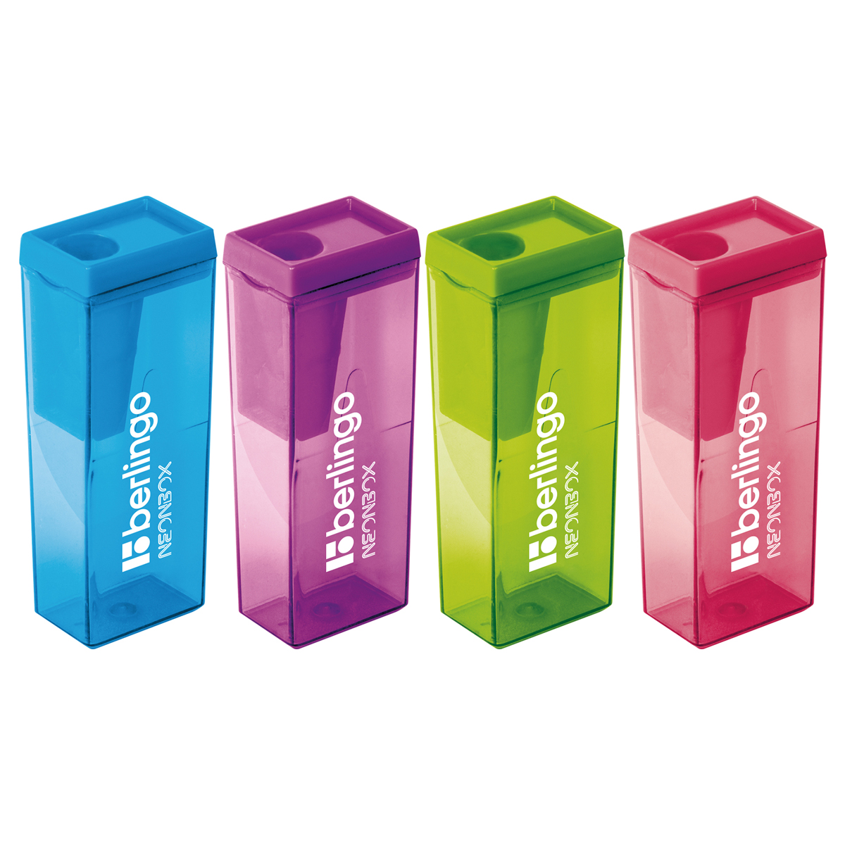 Точилка пластиковая Berlingo "NeonBox" 1 отверстие, контейнер, ассорти