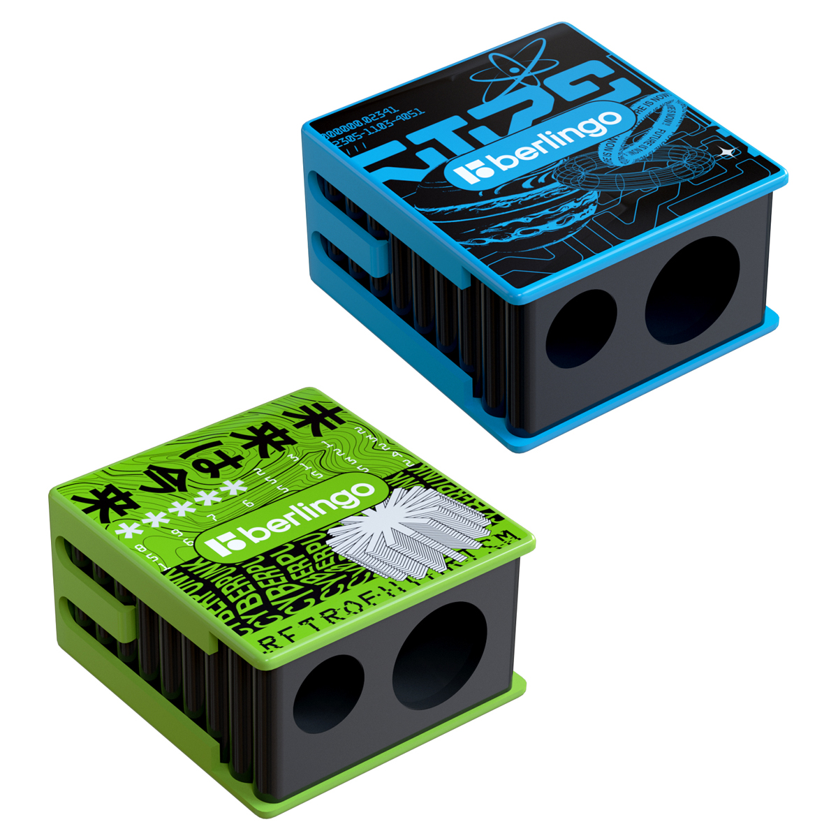 Точилка пластиковая Berlingo "Future Tech", с контейнером, 2 отверстия, ассорти