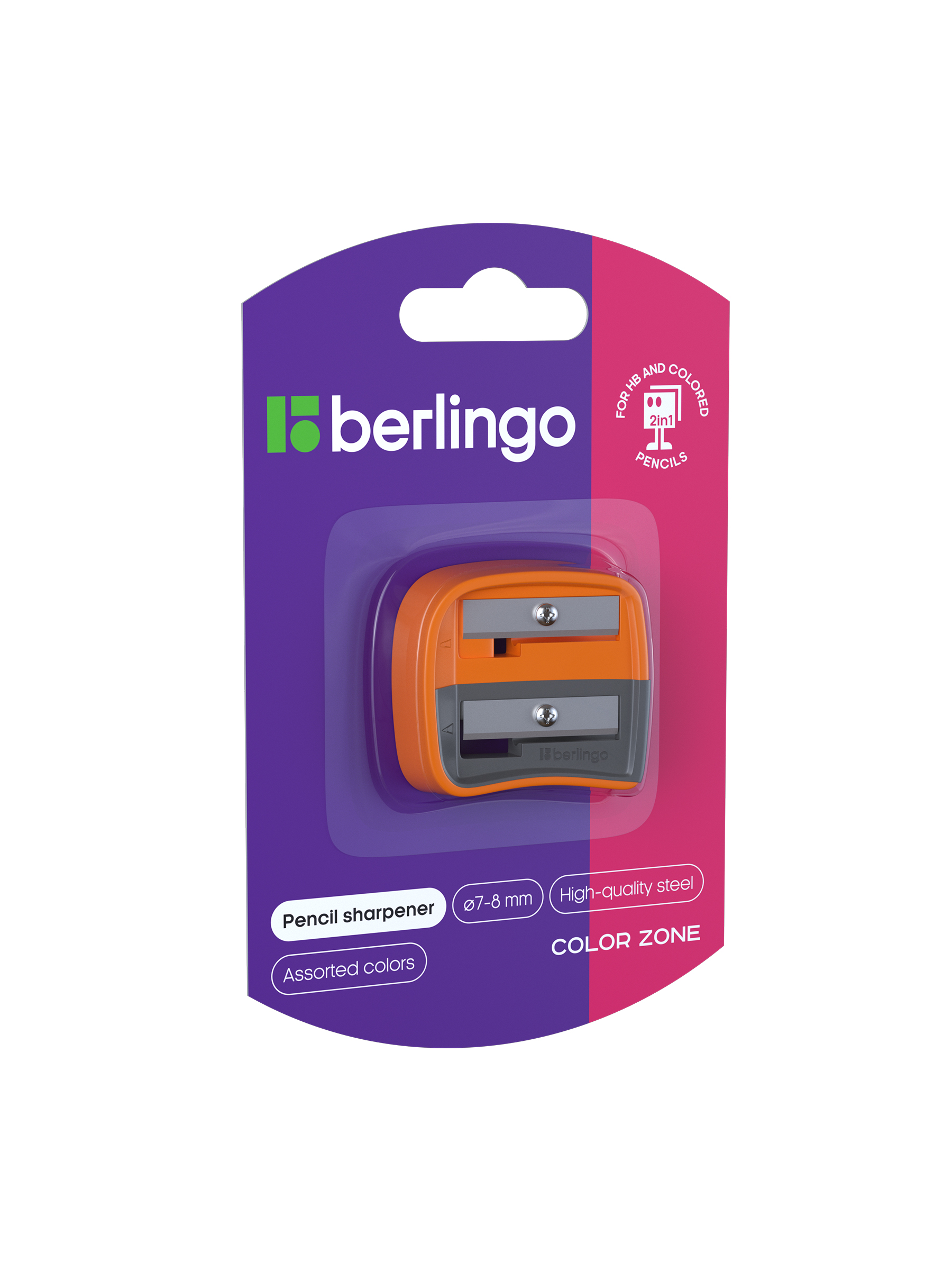 Точилка пластиковая Berlingo "Color Zone Duo", 2 отверстия, для цветных и ч/г карандашей, блистер, оранжевая