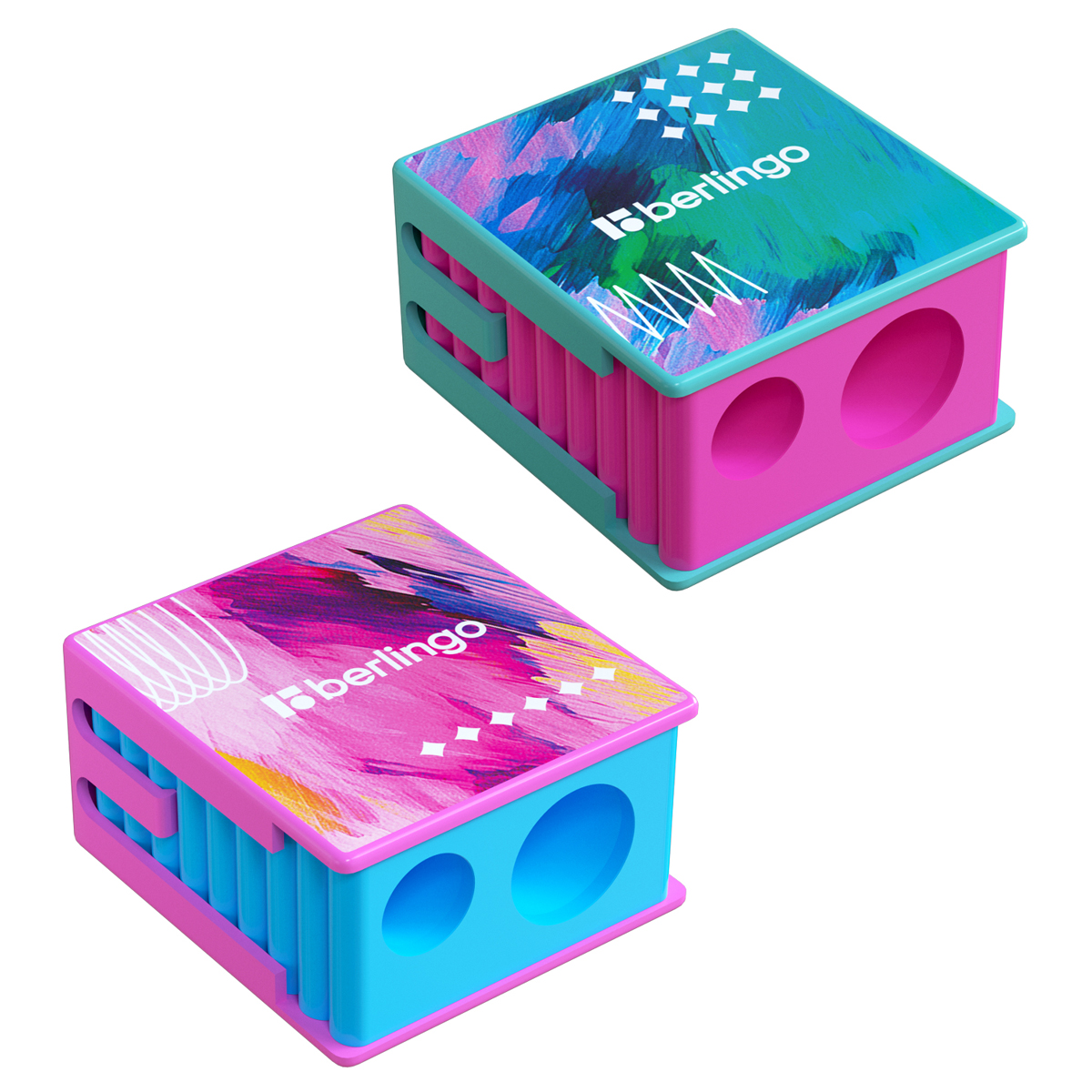 Точилка пластиковая Berlingo "Neonometry", с контейнером, 2 отверстия, ассорти