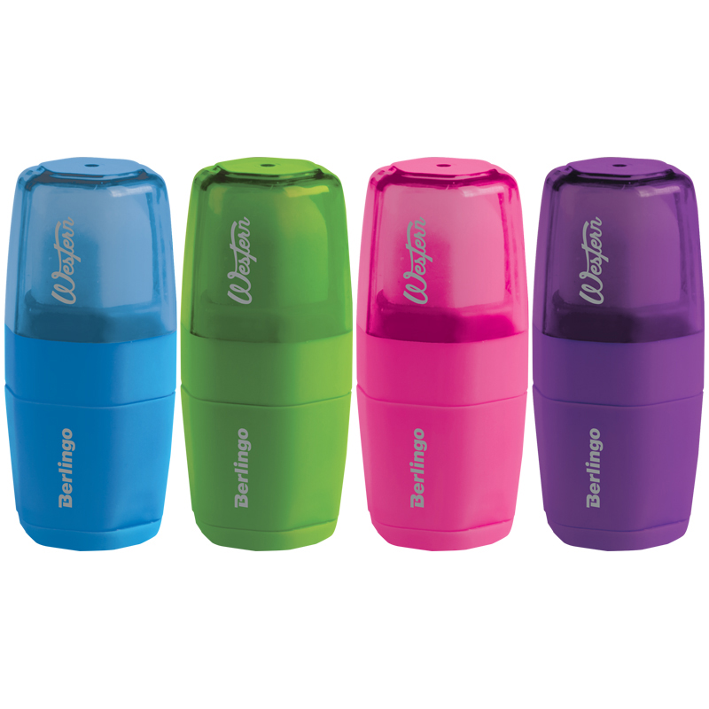 Точилка пластиковая с ластиком Berlingo "Western" 1 отверстие, контейнер, ассорти