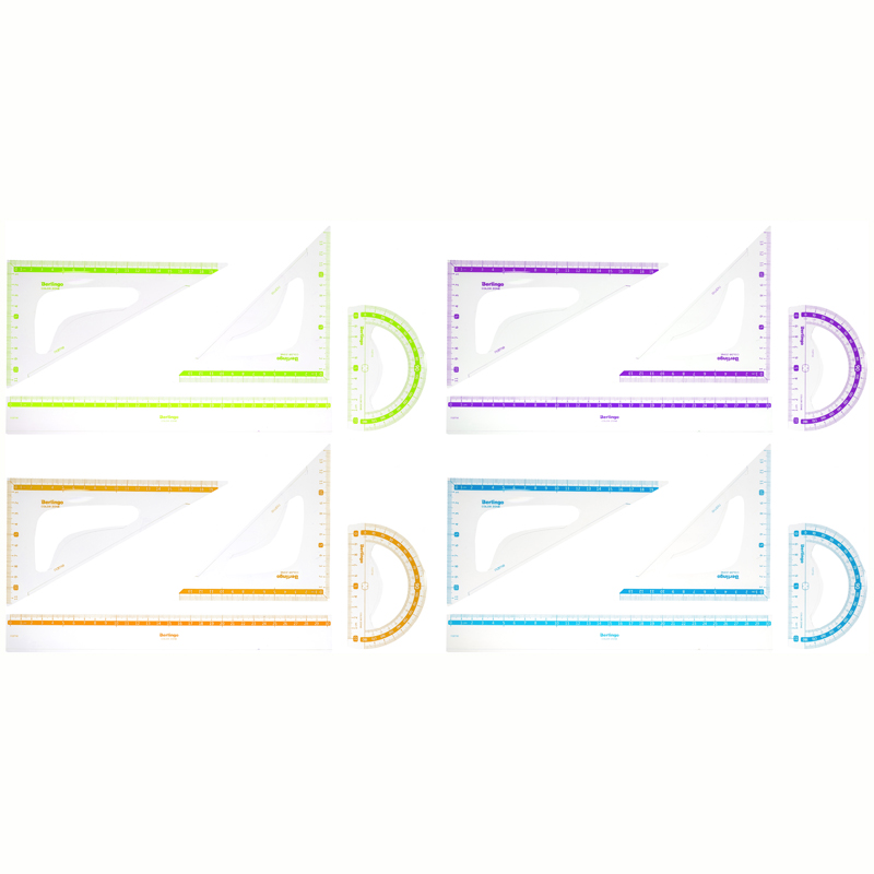 Набор чертежный большой Berlingo "Color" (треуг. 2шт., линейка 30см, транспортир), прозрачный