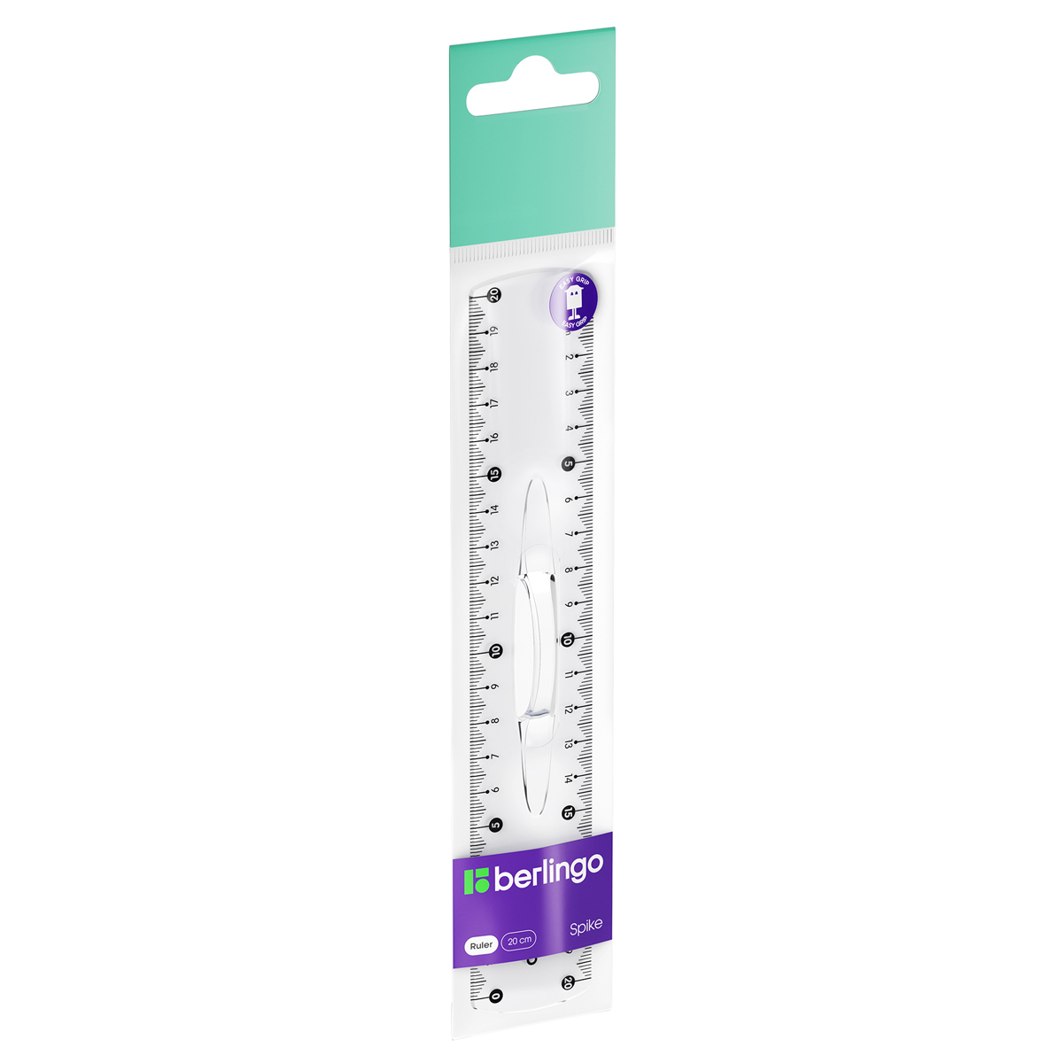 Линейка 20см Berlingo "Spike", пластиковая, с держателем, прозрачная, европодвес