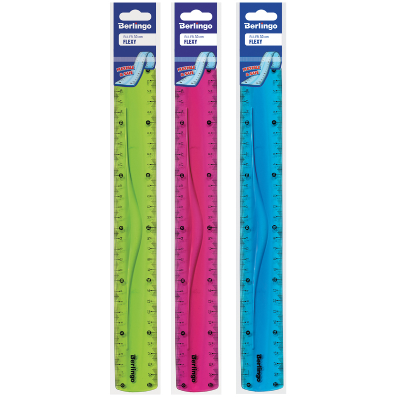 Линейка 30см Berlingo "Flexy", пластиковая, гибкая, ассорти, европодвес