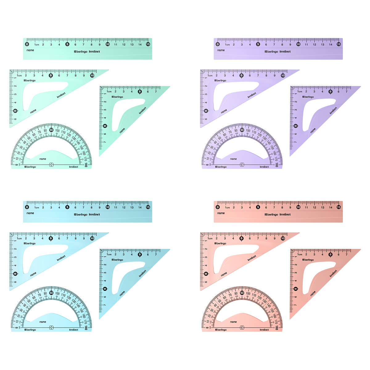 Набор чертежный малый Berlingo "Instinct" (треуг. 2шт., линейка 15см, транспортир), ассорти